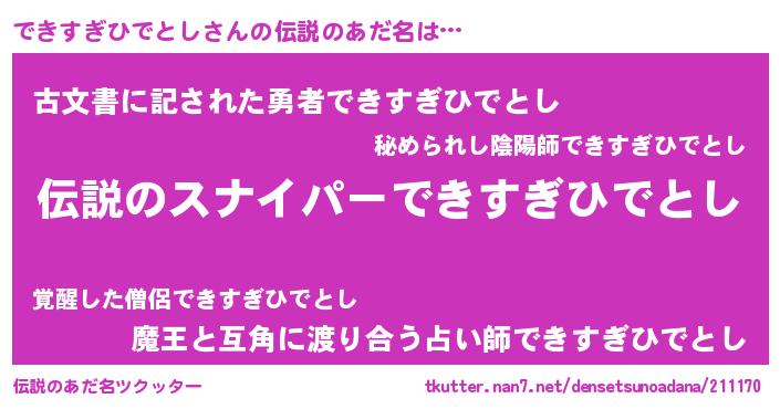 | 意味不明あだ名 | 『自称できすぎひでとし』 |