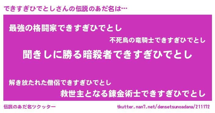 | 意味不明あだ名 | 『住所不定無職できすぎひでとし(50歳)』 |