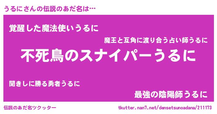 | 女子向けラノベタイトル風あだ名 | 『うるにの玉の輿計画!』 |