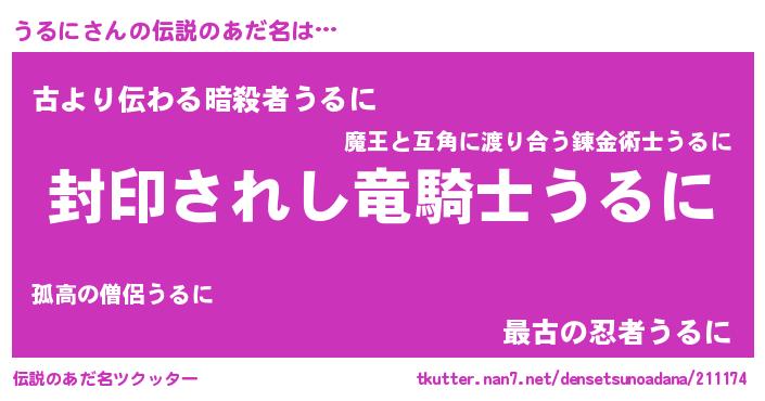 | 意味不明あだ名 | 『自称うるに』『ペロリンうるに』 |