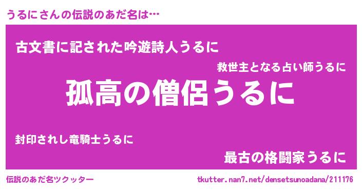 | 意味不明あだ名 | 『とにかく怪しいうるに』 |