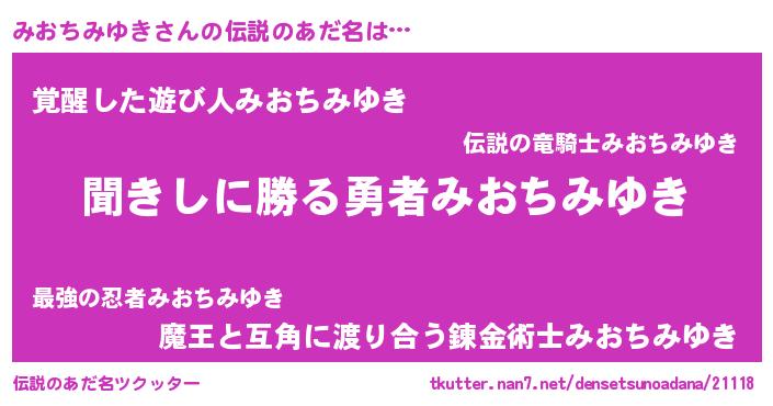 | 意味不明あだ名 | 『永久保存みおちみゆき』 |