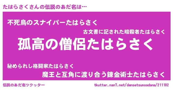 | 女子向けラノベタイトル風あだ名 | 『たはらさくは平凡を望む』 |