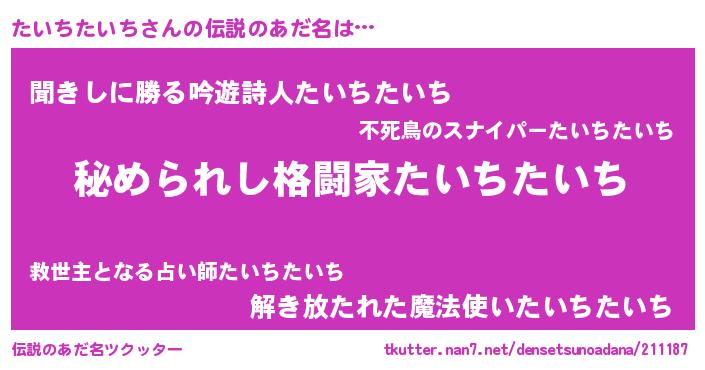 | 意味不明あだ名 | 『たいちたいちフォーエバー』 |