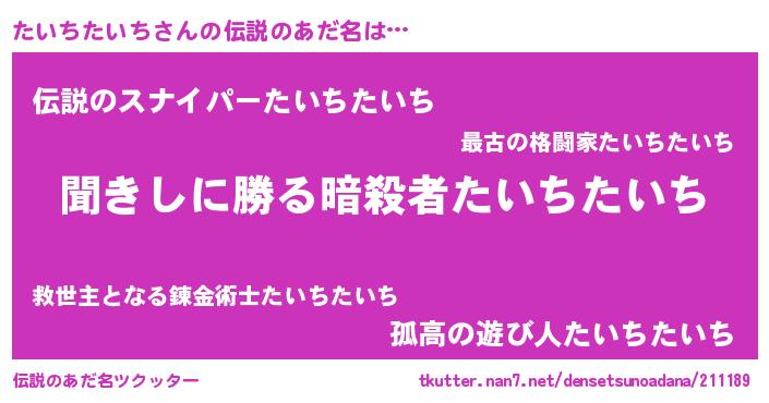 | 男性向けラノベタイトル風あだ名 | 『たいちたいちという概念が存在しない退屈な世界 』 |