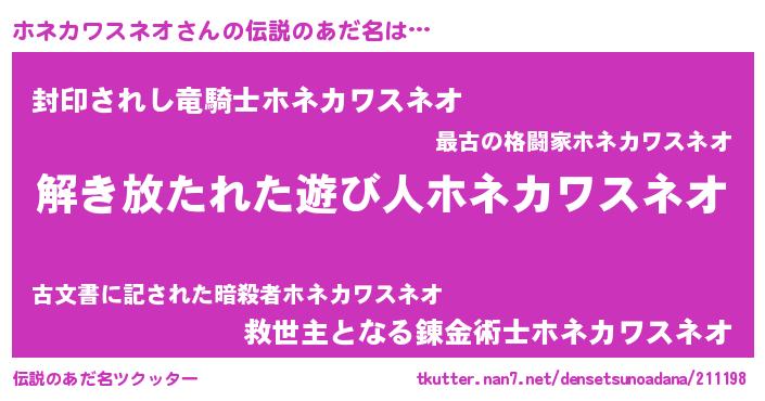 | 意味不明あだ名 | 『自称ホネカワスネオ』 |
