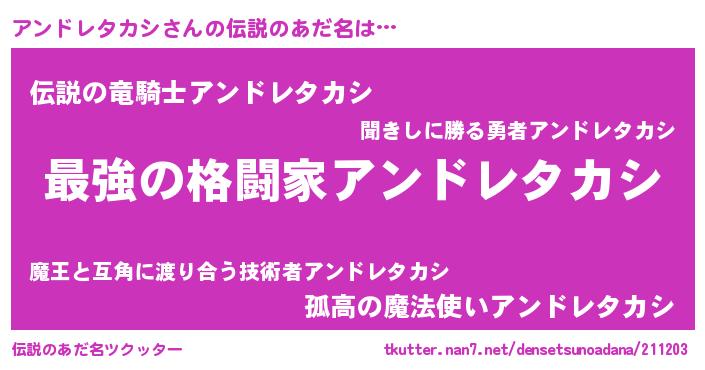 | ファンタジー風あだ名 | 『エターナルアンドレタカシー』 |