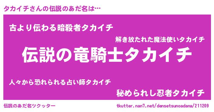 | ヒーロー風カッコイイあだ名 | 『スーパータカイチ』『ネオタカイチ』 |