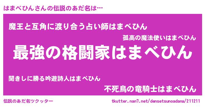| ヒーロー風カッコイイあだ名 | 『ウルトラはまべひんマン』 |