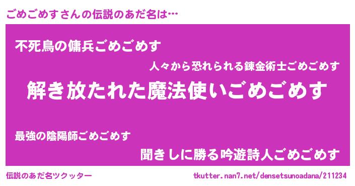 | 女子向けラノベタイトル風あだ名 | 『ごめごめすの卵を拾いまして』 |
