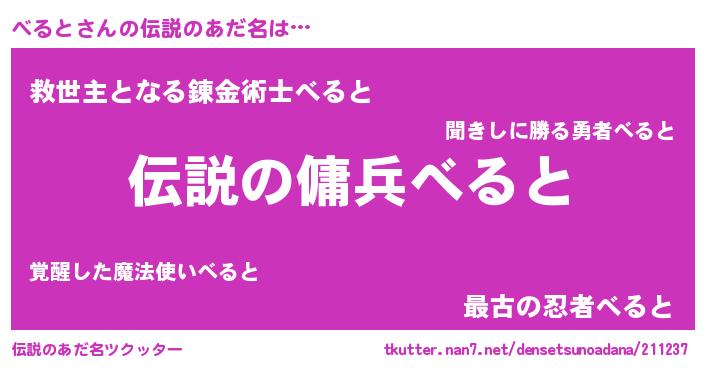 | 胡散臭い通販商品みたいなあだ名 | 『必ず成功する水晶球…その名も「べると」』 |