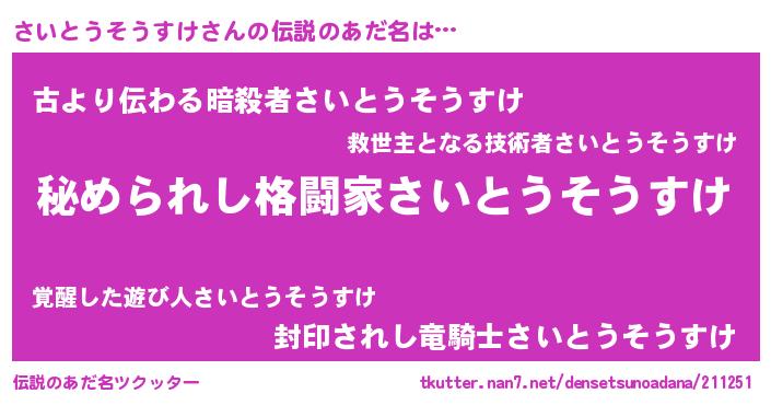 | ファンタジー風あだ名 | 『エターナルサイトウソウスケー』 |