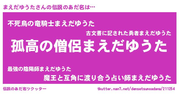 | 女子向けラノベタイトル風あだ名 | 『シンデレラまえだゆうた家の靴箱館』 |