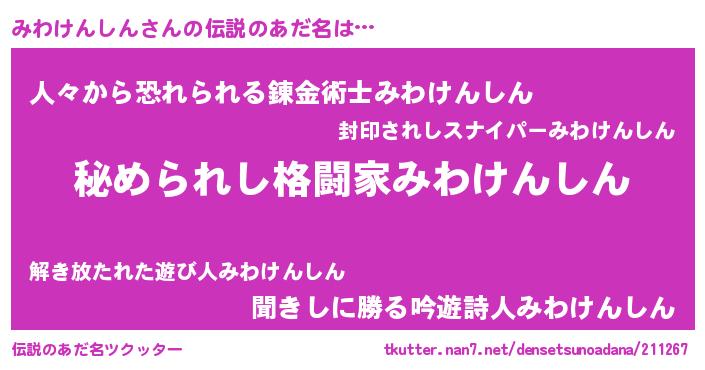 | 料理風あだ名 | 『みわけんしんごはん』 |