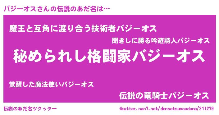 | ヒーロー風カッコイイあだ名 | 『超時空戦士バジーオス』『仮面バジダー』 |