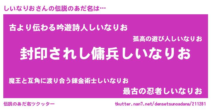 | 胡散臭い通販商品みたいなあだ名 | 『億万長者になれる水晶球…その名も「しいなりお」』 |