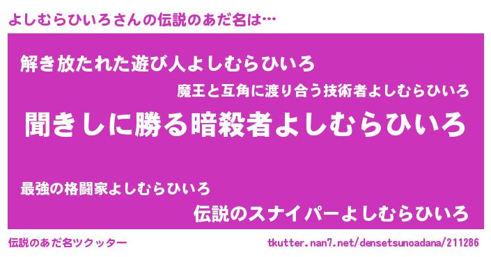 | 意味不明あだ名 | 『永久保存よしむらひいろ』 |