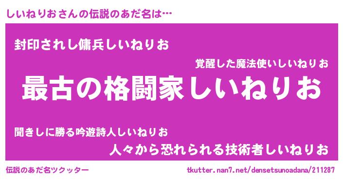 | 男性向けラノベタイトル風あだ名 | 『魔法科高校のしいねりお』 |