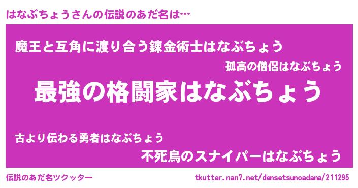 | 意味不明あだ名 | 『自称はなぶちょう』 |