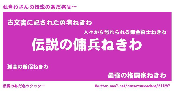 | 男性向けラノベタイトル風あだ名 | 『ねきわの憂鬱』『魔弾の王とねきわ』 |