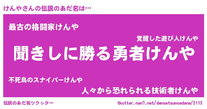 | 男性向けラノベタイトル風あだ名 | 『ケンヤスレイヤー』 |