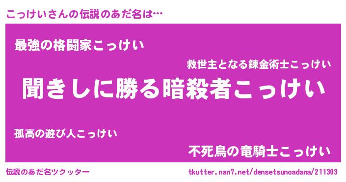 | 胡散臭い通販商品みたいなあだ名 | 『ガンによく効くアガリクス…その名も「こっけい」』 |