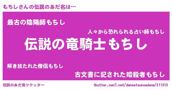 | 男性向けラノベタイトル風あだ名 | 『もちしの憂鬱』『はたらくもちしさま!』 |