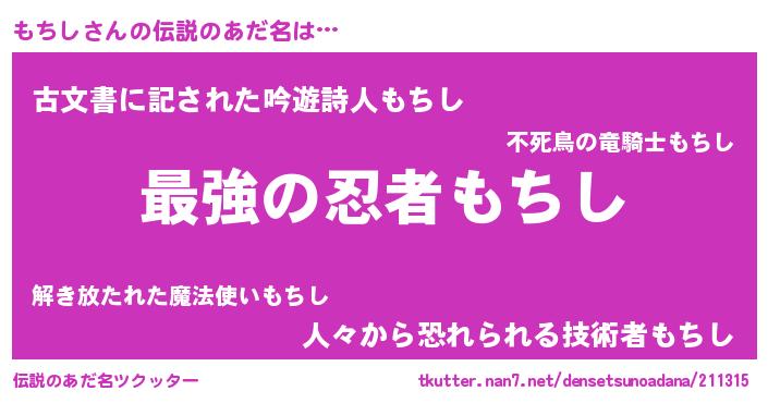 | 意味不明あだ名 | 『もちしフォーエバー』『永久保存もちし』 |