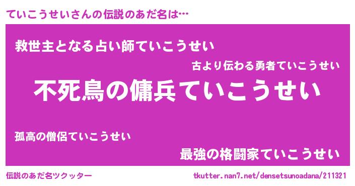 ていこうせいさんの伝説のあだ名をツクッター!