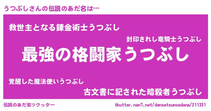 | 意味不明あだ名 | 『住所不定無職うつぶし(8歳)』 |