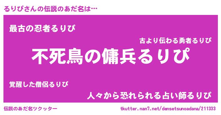 | ヒーロー風カッコイイあだ名 | 『スーパールリピ』『サイバー戦士ルリピ』 |