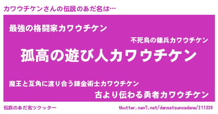 | 意味不明あだ名 | 『とにかく怪しいカワウチケン』 |