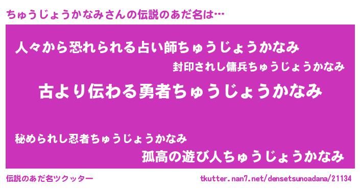 | 胡散臭い通販商品みたいなあだ名 | 『世界中を虜にした世界で10本だけ現存している希少なブランデー…その名も「ちゅうじょうかなみ」』 |