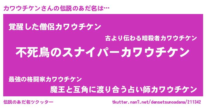 | 胡散臭い通販商品みたいなあだ名 | 『モテモテ間違いなし霊験あらたかなお札…その名も「カワウチケン」』 |