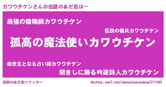 | 男性向けラノベタイトル風あだ名 | 『ダンジョンにカワウチケンを求めるのは間違っているだろうか』 |