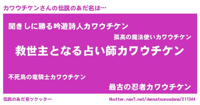 | 男性向けラノベタイトル風あだ名 | 『この素晴らしい世界にカワウチケンを!』 |