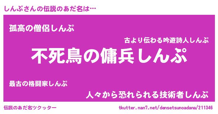 | ヒーロー風カッコイイあだ名 | 『スーパーシンプ』『天弓騎士シン』 |