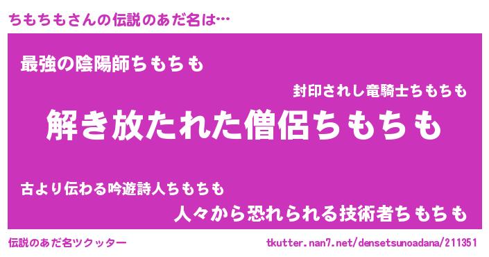 | 意味不明あだ名 | 『とにかく怪しいちもちも』 |