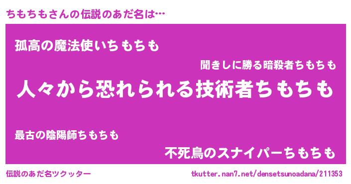 | ヒーロー風カッコイイあだ名 | 『正義の使者ちもちも』『黄金騎士チモ』 |