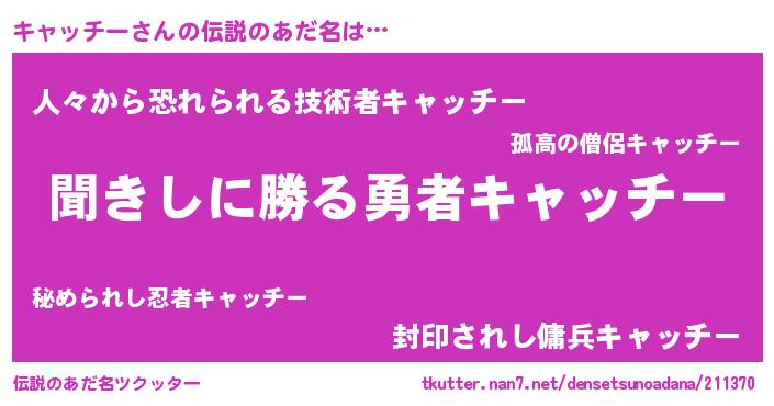 | ヒーロー風カッコイイあだ名 | 『ネオキャッチー』『仮面キャダー』 |