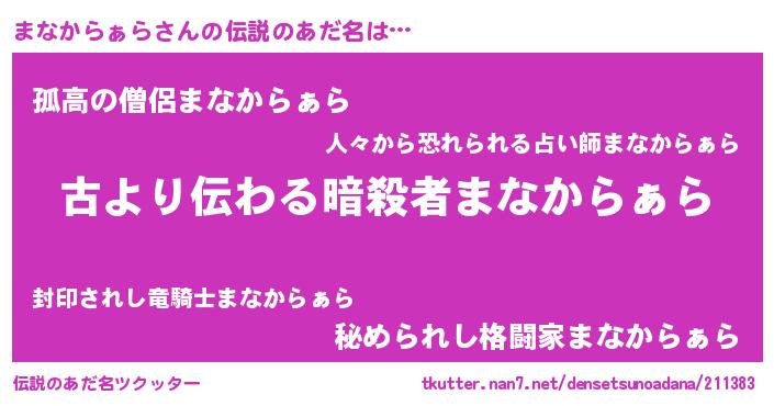 | ヒーロー風カッコイイあだ名 | 『ネオマナカラァラ』『暗黒騎士マナ』 |