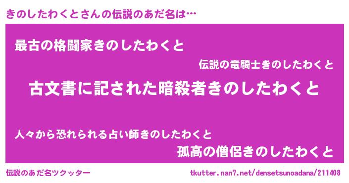 | 意味不明あだ名 | 『自称きのしたわくと』 |