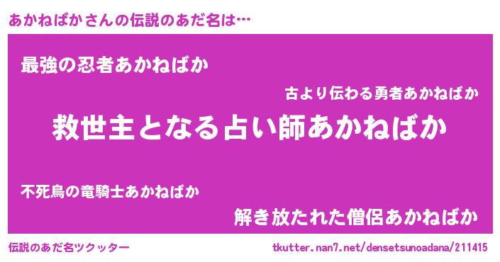 | ヒーロー風カッコイイあだ名 | 『天空の使者あかねばか』『銀牙騎士アカ』 |