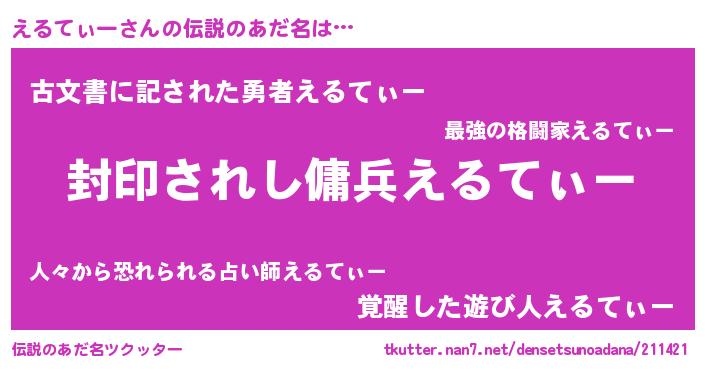 | 胡散臭い通販商品みたいなあだ名 | 『億万長者になれる水晶球…その名も「えるてぃー」』 |