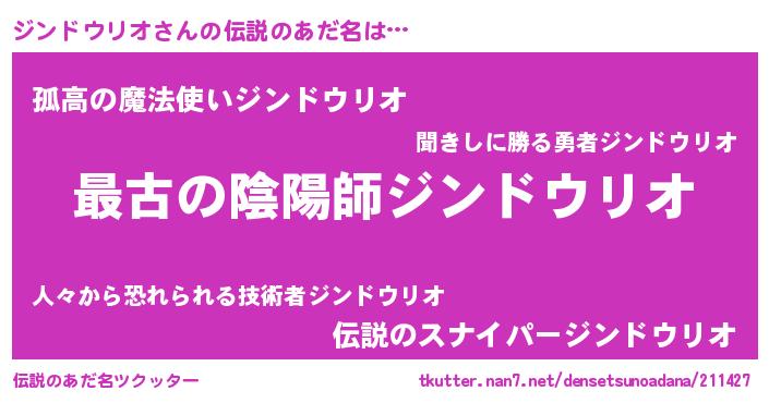 | 男性向けラノベタイトル風あだ名 | 『この素晴らしい世界にジンドウリオを!』 |