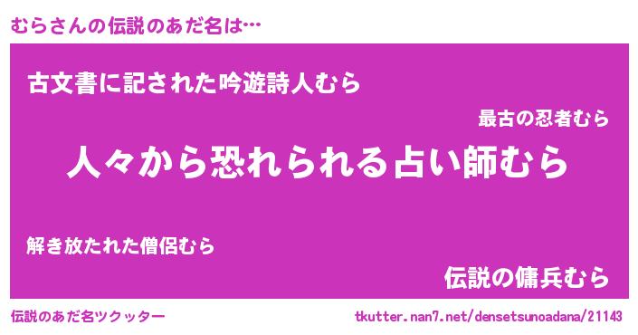 | ヒーロー風カッコイイあだ名 | 『ウルトラ戦士ムラ』『天空の使者むら』 |
