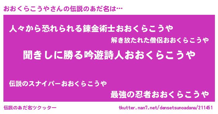 | 意味不明あだ名 | 『永久保存おおくらこうや』 |