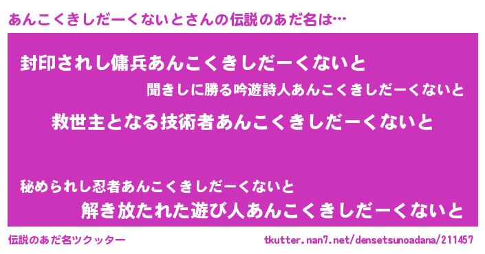 | 胡散臭い通販商品みたいなあだ名 | 『モンドセレクションを受賞したマグネット磁石…その名も「あんこくきしだーくないと」』 |