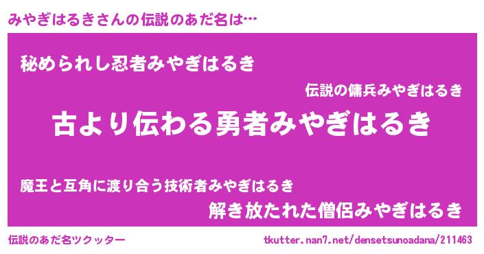 | 意味不明あだ名 | 『永久保存みやぎはるき』 |