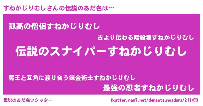 | ヒーロー風カッコイイあだ名 | 『超時空戦士スネカジリムシ』 |